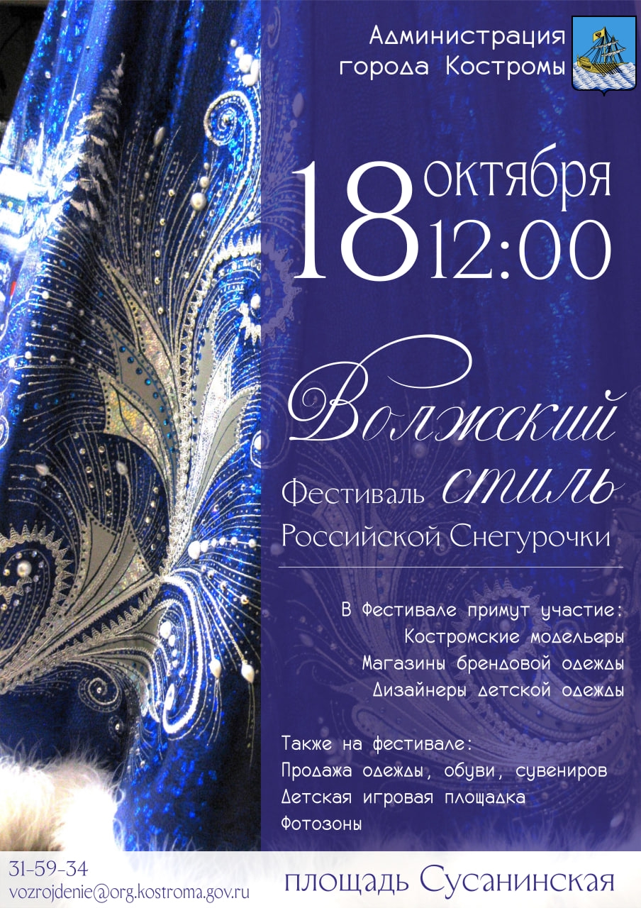 Уже в предстоящие выходные, 18 октября в 12:00 на Сусанинской площади, костромичей и гостей города ожидает Фестиваль Российской Снегурочки "Волжский стиль"!