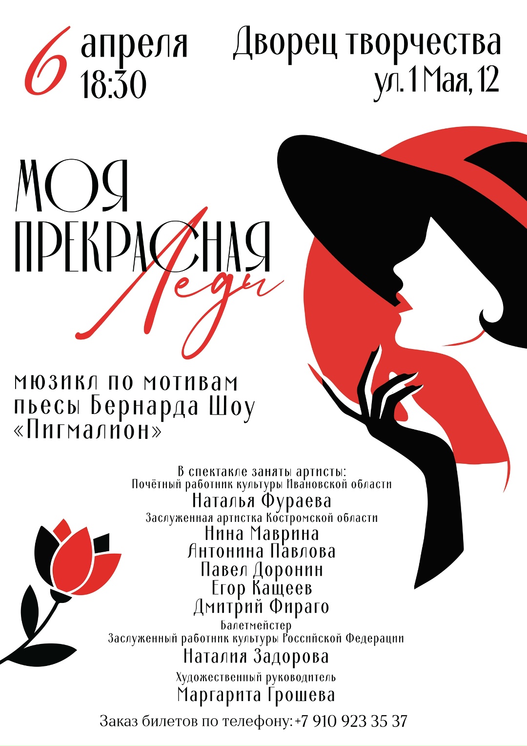6 апреля в 18:30 во Дворце творчества (ул. 1 Мая, 12) состоится премьера мюзикла «Моя прекрасная леди» по мотивам пьесы Бернарда Шоу «Пигмалион».