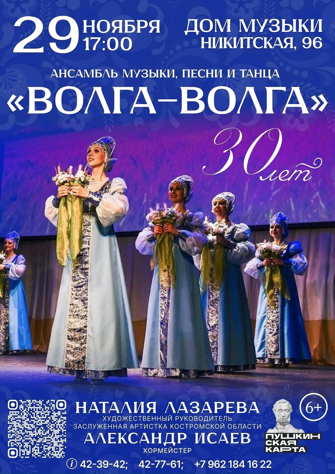 29 ноября в 17:00 часов в Доме музыки (ул. Никитская, д. 96) состоится юбилейный концерт ансамбля музыки, песни и танца «Волга-Волга».